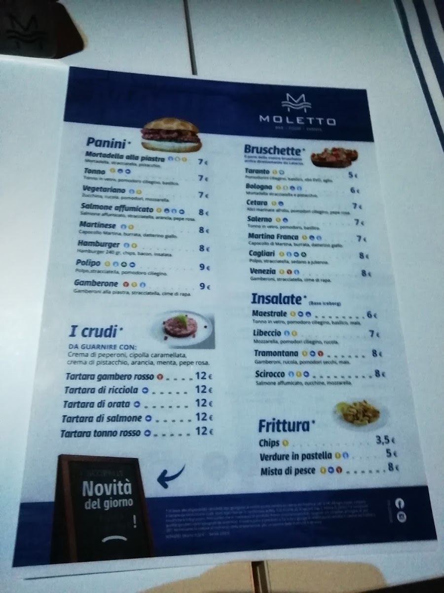 The menu at Moletto Restaurant & Bar offers a delightful fusion of traditional Italian cuisine with a fresh, seafood-focused twist. Among its standout dishes, the Gnocchetti Al Ragù Di Polpo provides a rich, savory experience with tender gnocchi complemented by a flavorful octopus ragù. For those who appreciate raw preparations, the Tartare de Thon delivers a refreshing and delicate tuna tartare, perfect as a starter. The pasta selection shines with the Tagliolino Ai Ricci Di Mare, a dish featuring delicate strands of tagliolini paired with the briny richness of sea urchins, and the Spaghetti Allo Scoglio In Bianco, which presents an assortment of fresh seafood in a light, garlicky broth. Seafood lovers will also enjoy the Cavatelli Con Cozze E Vongole Veraci, a comforting combination of pasta, mussels, and clams, all enhanced by a flavorful broth. The Filetto Orata Con Chips Patate rounds out the menu, offering a beautifully cooked sea bream fillet served alongside crispy, golden potato chips. With its variety of expertly prepared dishes, Moletto’s menu promises an unforgettable dining experience.